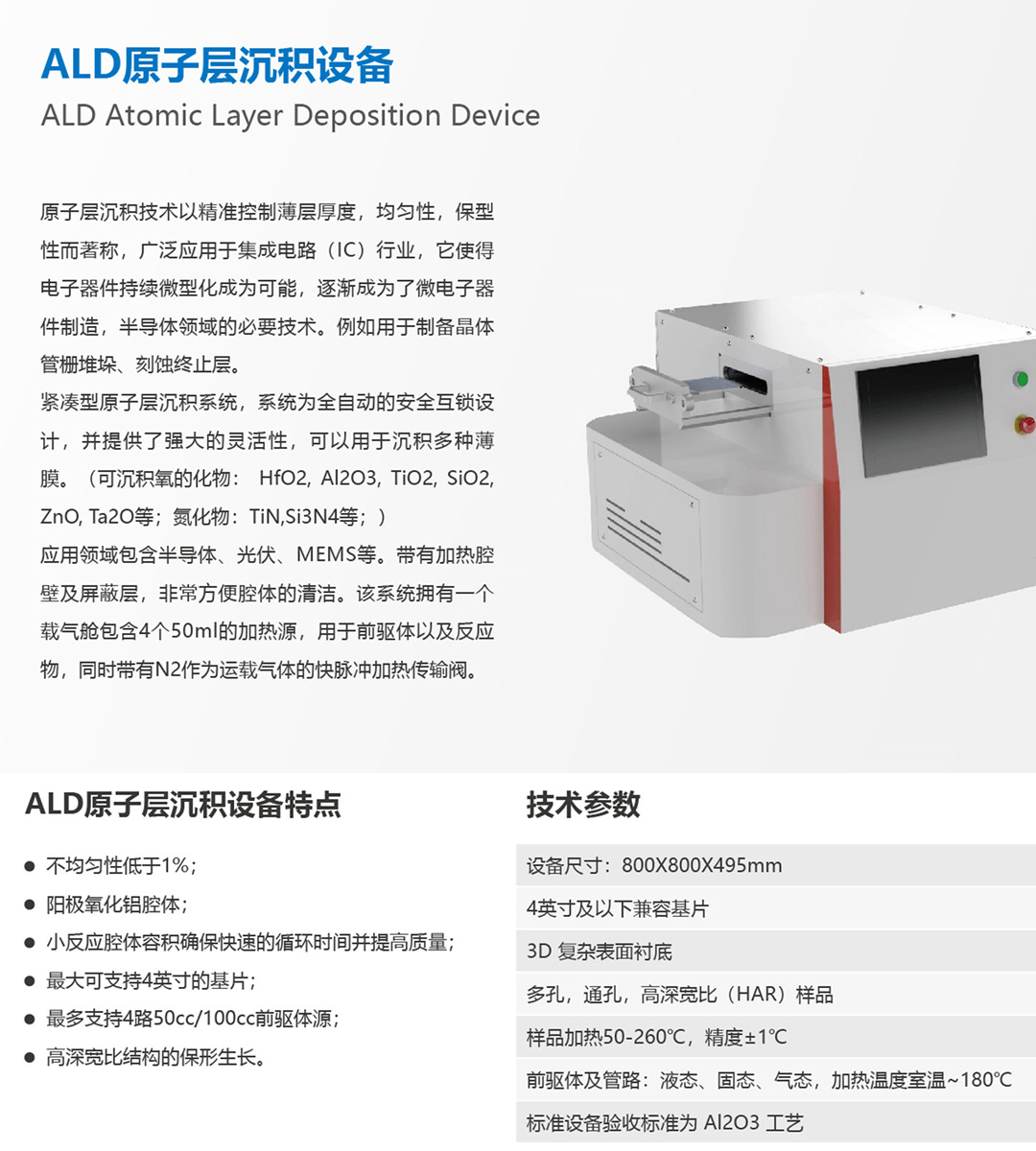 ALD原子層沉積設備特點:
